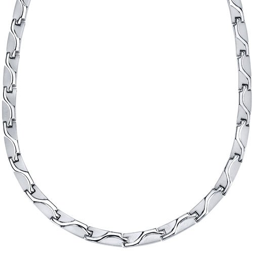 This bold and sophisticated statement is for the fashion forward individual. An impressive, brushed surface with polished wave design in high quality Titanium enhances the sturdy and tightly linked pattern. Any occasion and every ensemble will get a dash of fresh verve when you wear this season?s must-have. You can wear this as a single strand or layer it with your favorite necklaces in your exist